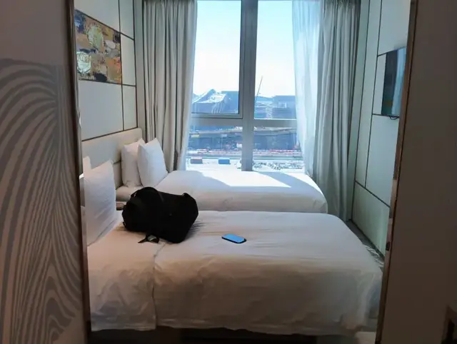 ▲亚博“万人坑”旁2000多港币一晚的双床房室内情况