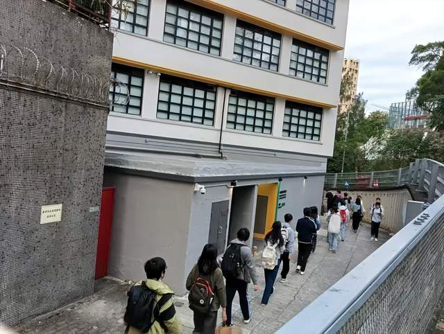 ▲红磡考点,考生从后巷排队进场。