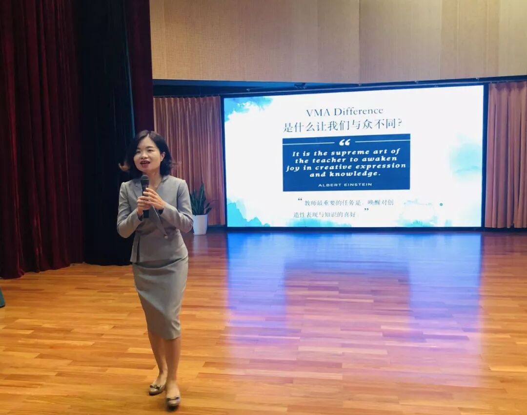 随后大家来到小剧场,万科梅沙书院的招生与品牌部主任的耿倩老师向大家介绍了书院的学校概况及办学特色 ,学术院长 Dr. Maryann O'Brien介绍了万科梅沙的办学成果和教学板块。