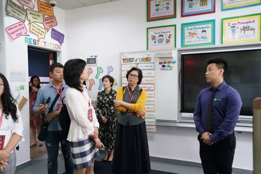 本次深圳蛇口国际学校访校团共有约50人参加。首先,访校团参观了中学部的校园,小班化的设计、多样的课程内容、丰富的学生作品装饰都给访校团留下了深刻的印象。